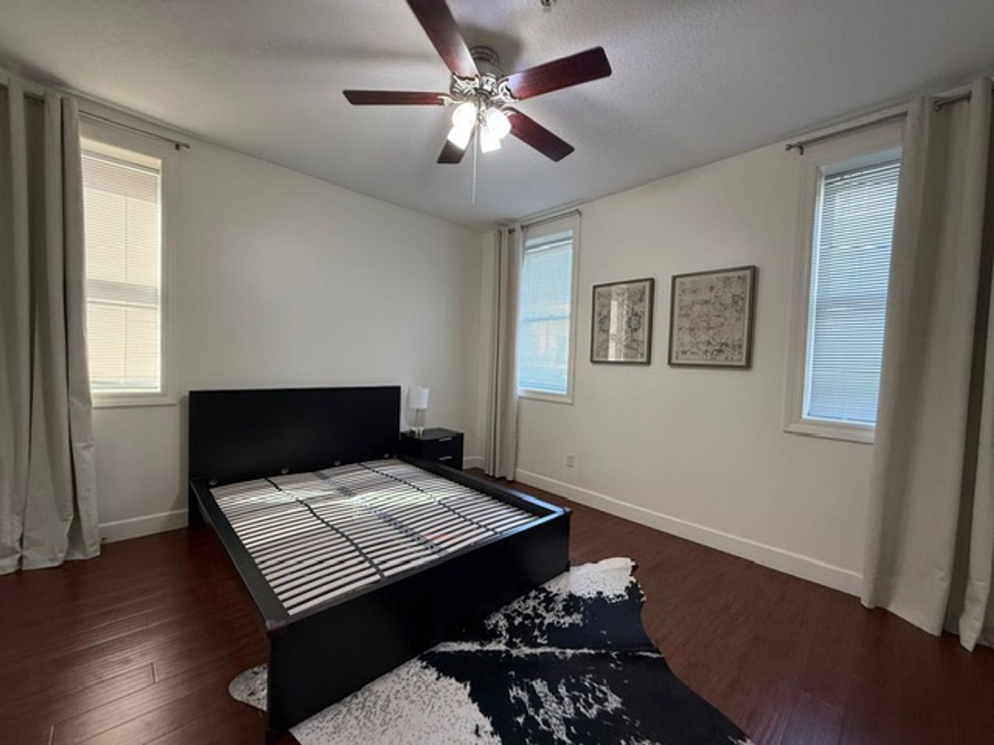 The apartment comes partially furnished, including living room furniture and select bedroom furnishings, making it an easy move-in option. The bedroom offers generous space and a walk-in closet, while the modern kitchen includes refrigerator, stove, microwave, dishwasher, and in-unit washer and dryer for convenience.